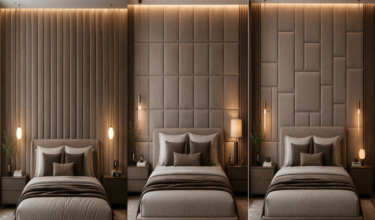 अपने बेडरूम को एक लग्जरी और खूबसूरत लुक देने के लिए बेड के पीछे वाली दीवार पर कुशन पैनलिंग करवाना एक बेहतरीन विकल्प है। जानें वेलवेट वर्टिकल से लेकर जियोमेट्रिक ब्लॉक और स्क्वायर ग्रिड जैसे यूनिक डिजाइन के बारे में, जो आपके कमरे को मॉडर्न और आलीशान बना देंगे।